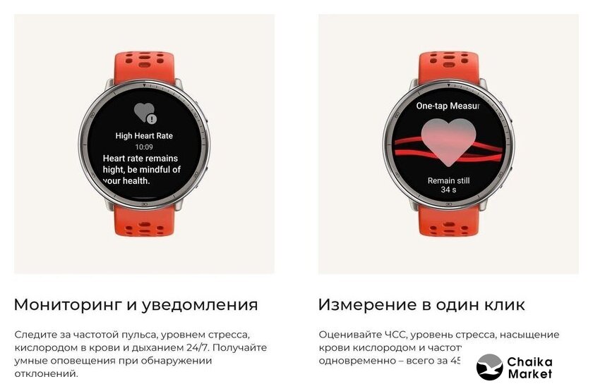 | Дополнительные функции | отслеживание сна, отслеживание уровня стресса, отслеживание женского здоровья, подсчет потраченных калорий, контроль частоты сердечных сокращений, дыхательные упражнения, таймер, секундомер, компас, режим фонарика, поиск смартфона, подключение беспроводных наушников |