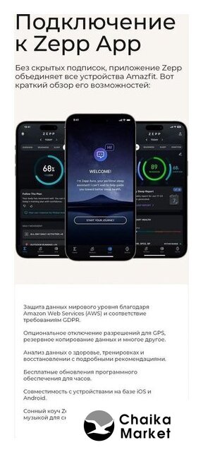 | Поддерживаемые версии ОС смартфона | Android 7.0+, iOS 14.0+ |