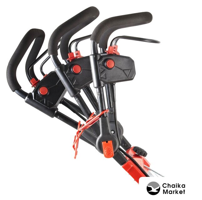 ручной, аккумуляторный двигатель 500 Вт, захват 33x17 см, выброс на 5 м