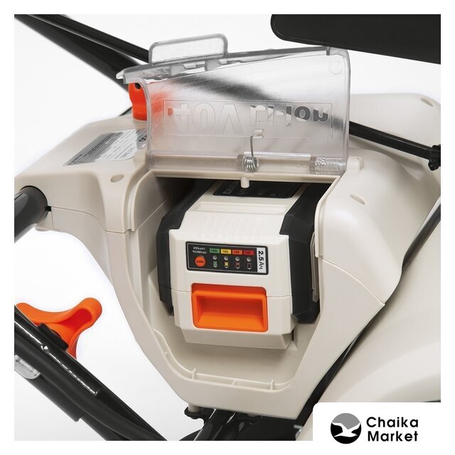 ручной, аккумуляторный двигатель, захват 50x25 см, выброс на 7 м