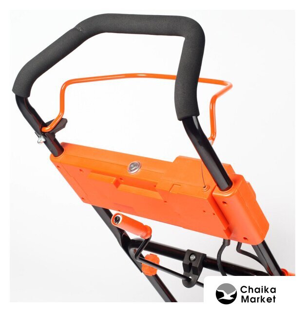 ручной, аккумуляторный двигатель 500 Вт, захват 33x17 см, выброс на 5 м