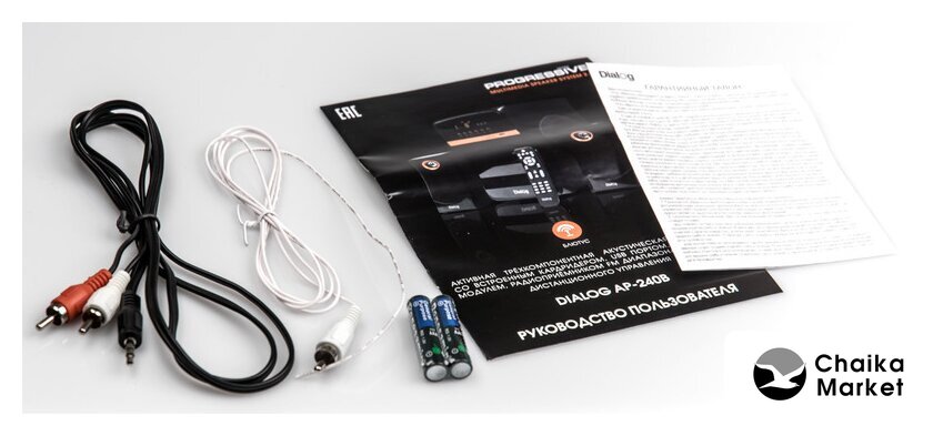 Комплект поставки | сабвуфер, два сателлита с кабелем для подключения, кабель для подключения к источнику сигнала 2RCA-M->3.5 мм "стерео джек", беспроводной пульт ДУ, батарейки ААА для пульта ДУ - 2 шт, антенный кабель, руководство пользователя, гарантийный тало |