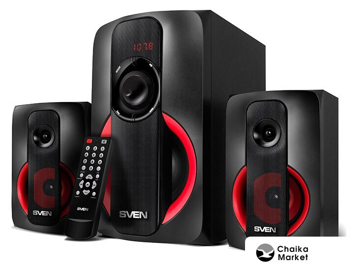2.1, 55 Вт, пульт, радио, BT, карты памяти