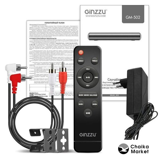 Комплект поставки | - пульт ДУ- батарейки для пульта ДУ- адаптер питания- аудиокабель 2RCA- набор для настенного крепежа- документация |