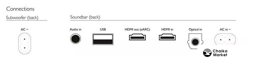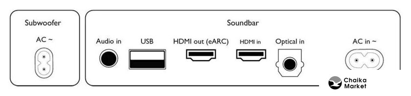 | Состав аудиосистемы | звуковая панель, беспроводной сабвуфер |