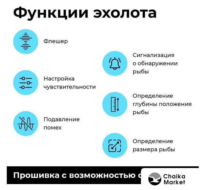 Функции | определение расстояния до рыбы, индикация рыбы в реальном времени, мелководье/отмель |