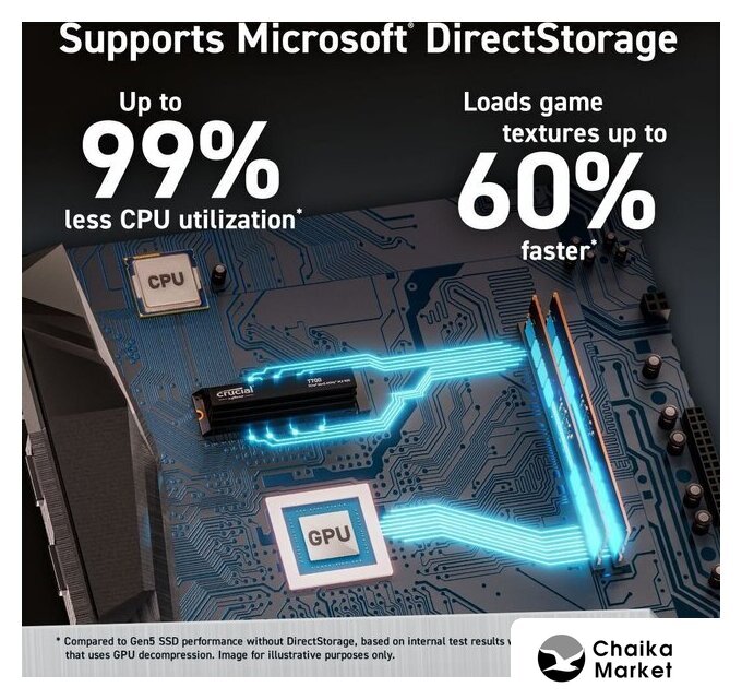 1 ТБ, M.2 2280, PCI Express 5.0 x4, контроллер Phison PS5026-E26, микросхемы 3D TLC NAND, последовательный доступ: 13600/10200 МБайт/с, случайный доступ: 1400000/1750000 IOps, DRAM-буфер, совместимость с PS5
