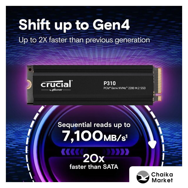 2 ТБ, M.2 2280, PCI Express 4.0 x4, микросхемы 3D TLC NAND, последовательный доступ: 7100/6800 МБайт/с, случайный доступ: 1200000/1000000 IOps
