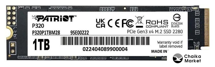 1 ТБ, M.2 2280, PCI Express 3.0 x4, микросхемы 3D TLC NAND, последовательный доступ: 3300/3000 МБайт/с, случайный доступ: 150000/100000 IOps