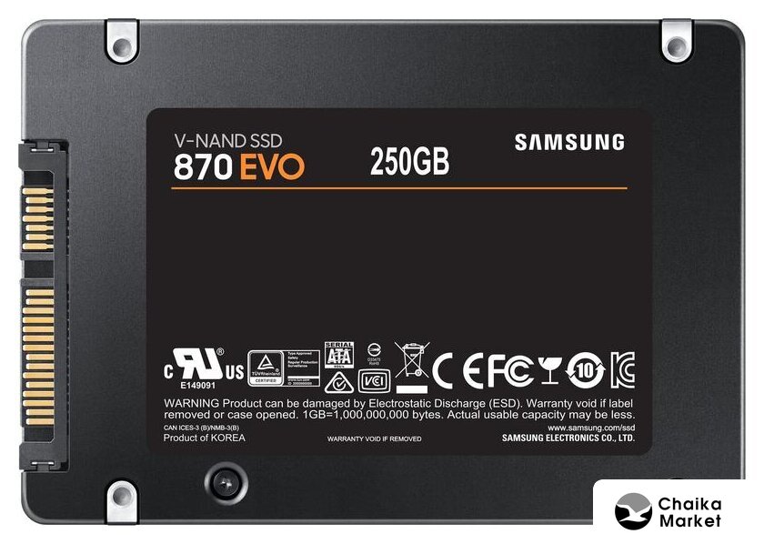 250 ГБ, 2.5", SATA 3.0, контроллер Samsung MKX, микросхемы 3D TLC NAND