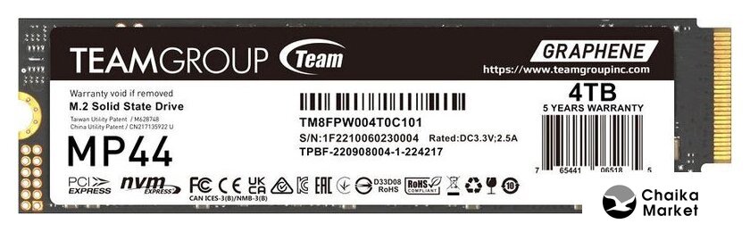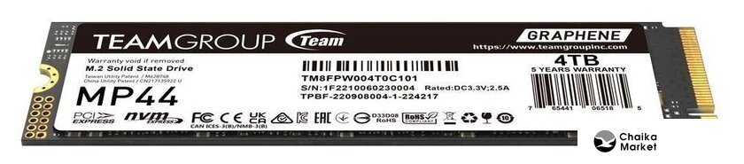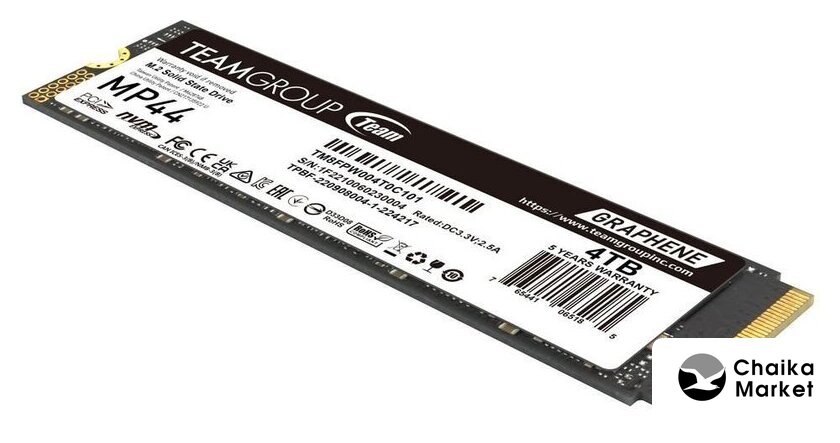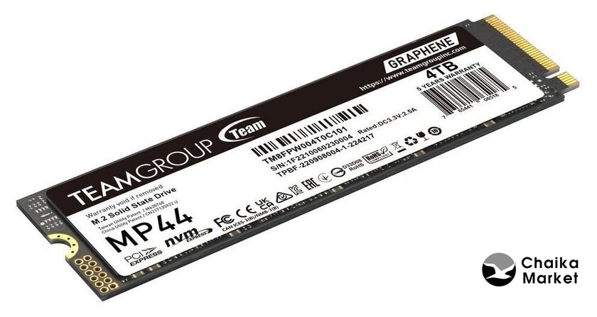 4 ТБ, M.2 2280, PCI Express 5.0 x4 (NVMe 2.0), контроллер Phison PS5026-E26, микросхемы 3D TLC NAND, последовательный доступ: 14100/12600 МБайт/с, DRAM-буфер