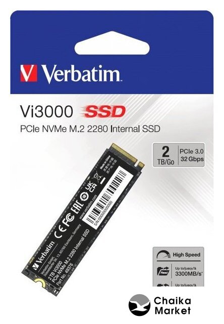 2 ТБ, M.2 2280, PCI Express 3.0 x4 (NVMe 1.4), последовательный доступ: 3200/1900 МБайт/с, случайный доступ: 200000/250000 IOps