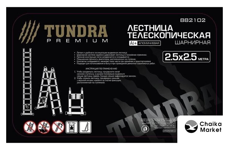 лестница-трансформер, 12 ступеней, алюминий, верхняя площадка