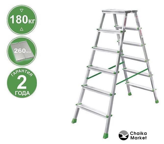 лестница-стремянка, 4 ступени, алюминий, верхняя площадка