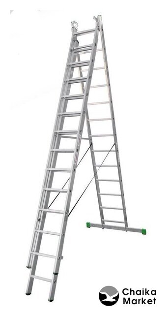 лестница-стремянка, 9 ступеней, алюминий, верхняя площадка, поручни
