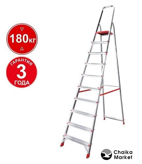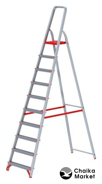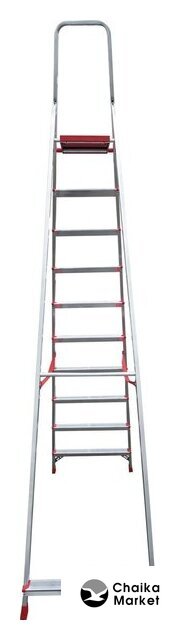 лестница-стремянка, 9 ступеней, алюминий, верхняя площадка