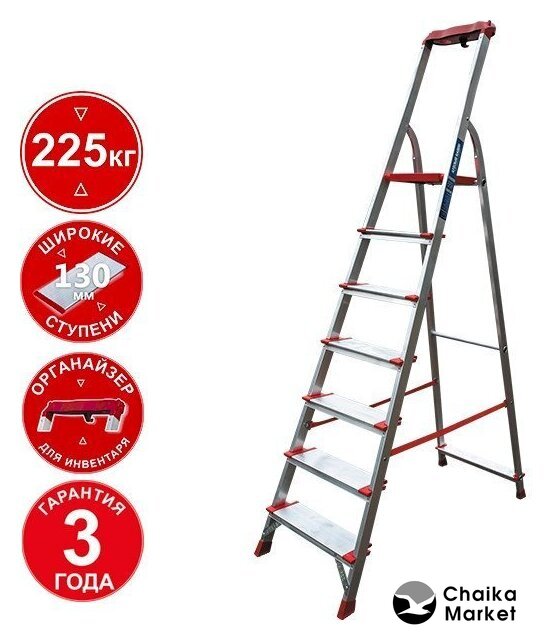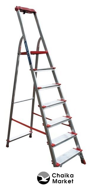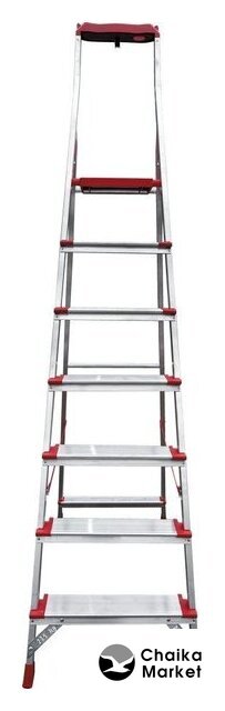 лестница-стремянка, 9 ступеней, алюминий, верхняя площадка
