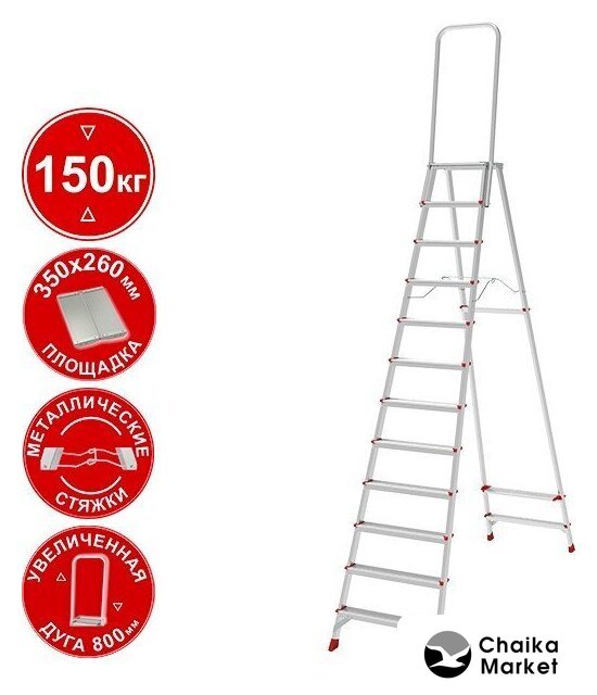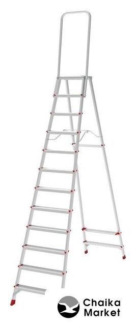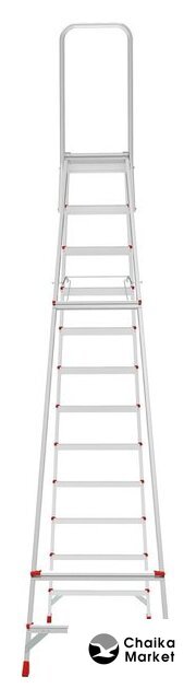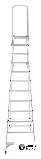 лестница-стремянка, 9 ступеней, алюминий, верхняя площадка, поручни