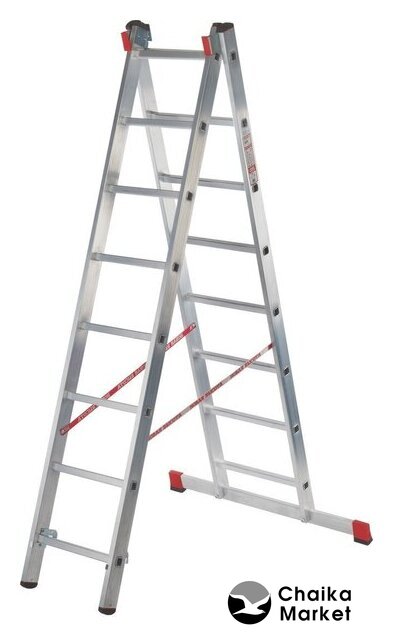 лестница-стремянка, 8 ступеней, алюминий, верхняя площадка
