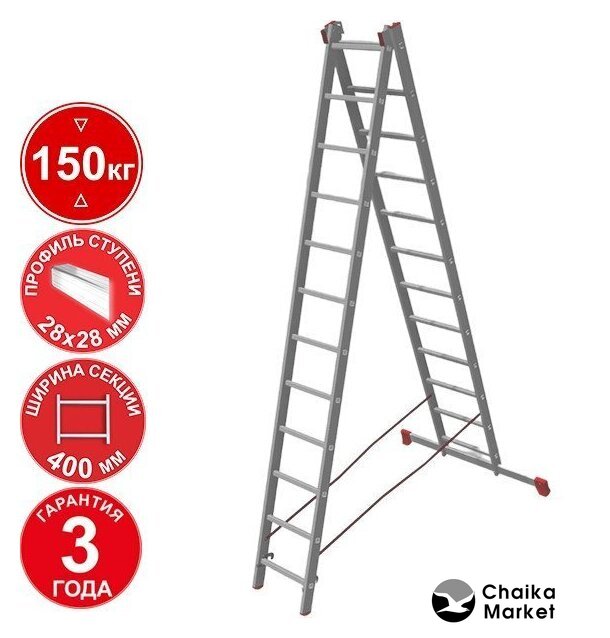 лестница-стремянка, 12 ступеней, алюминий, верхняя площадка