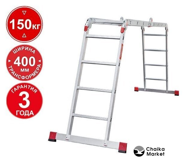 лестница-трансформер, 12 ступеней, алюминий, верхняя площадка