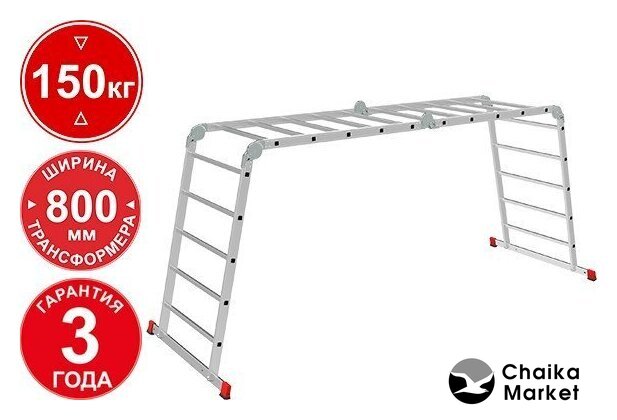 лестница-трансформер, 12 ступеней, алюминий, верхняя площадка