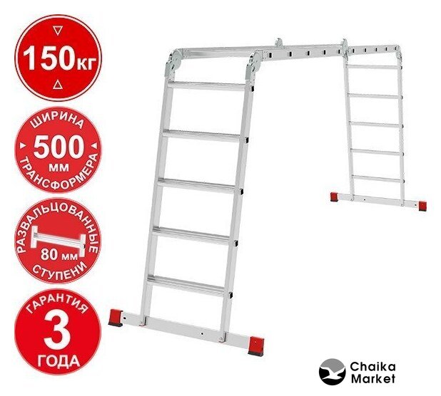 лестница-трансформер, 12 ступеней, алюминий, верхняя площадка