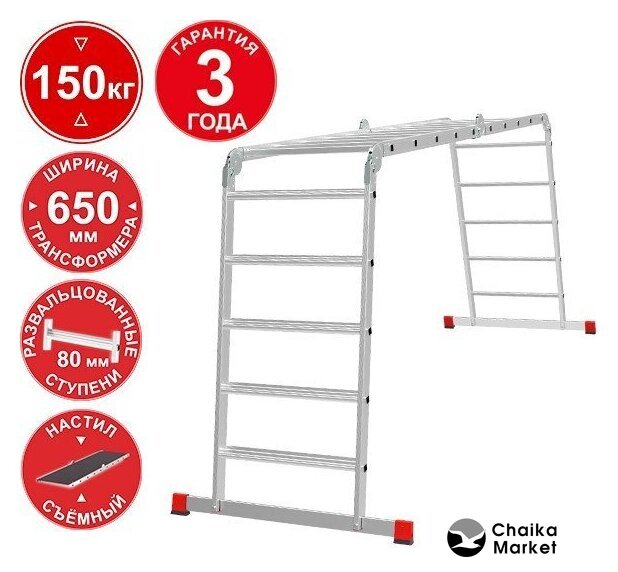 лестница-трансформер, 14 ступеней, алюминий, верхняя площадка