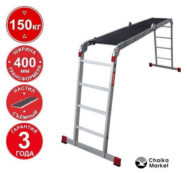 лестница-трансформер, 12 ступеней, алюминий, верхняя площадка