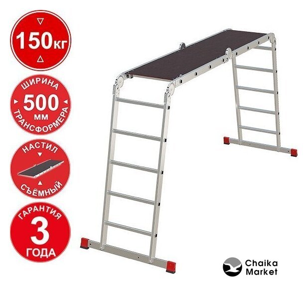 лестница-трансформер, 12 ступеней, алюминий, верхняя площадка