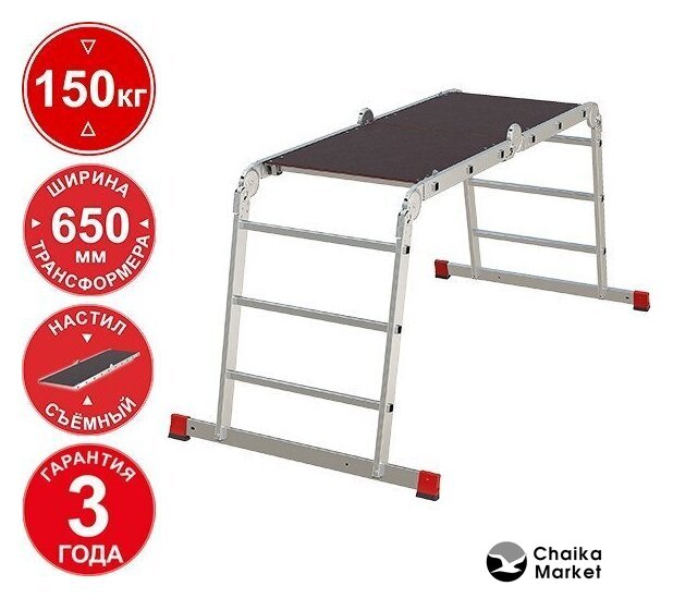 лестница-трансформер, 14 ступеней, алюминий, верхняя площадка