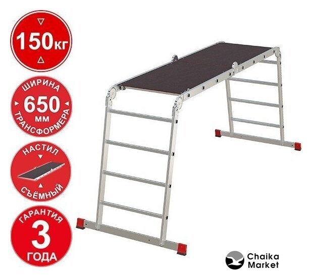 лестница-трансформер, 12 ступеней, алюминий, верхняя площадка