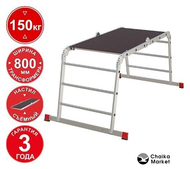 лестница-трансформер, 12 ступеней, алюминий, верхняя площадка