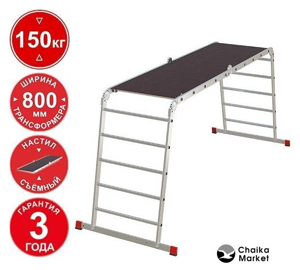 лестница-трансформер, 18 ступеней, алюминий, верхняя площадка
