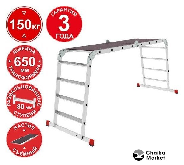 лестница-трансформер, 12 ступеней, алюминий, верхняя площадка