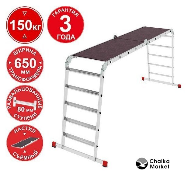 лестница-трансформер, 18 ступеней, алюминий, верхняя площадка