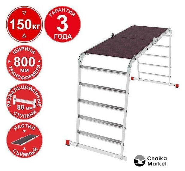 лестница-трансформер, 18 ступеней, алюминий, верхняя площадка