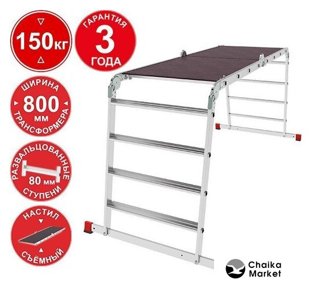 лестница-трансформер, 18 ступеней, алюминий, верхняя площадка