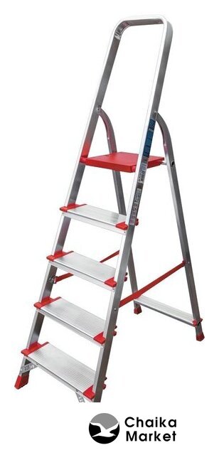 лестница-стремянка, 5 ступеней, алюминий, верхняя площадка