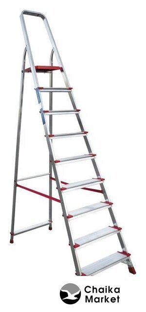 лестница-стремянка, 10 ступеней, алюминий, верхняя площадка