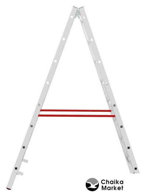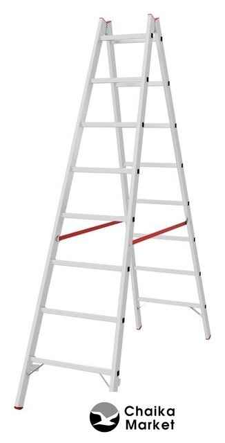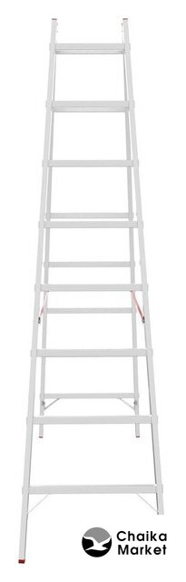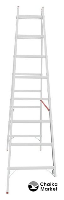 лестница-стремянка, 9 ступеней, алюминий, верхняя площадка, поручни