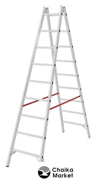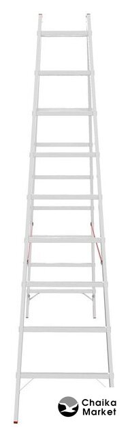 лестница-стремянка, 10 ступеней, алюминий, верхняя площадка