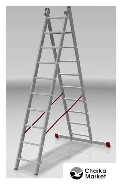 лестница-стремянка, 10 ступеней, алюминий, верхняя площадка