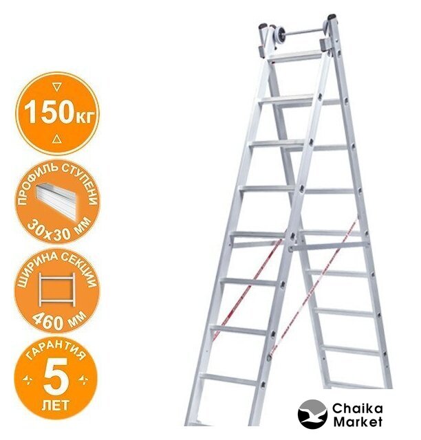 лестница-стремянка, 6 ступеней, алюминий, верхняя площадка