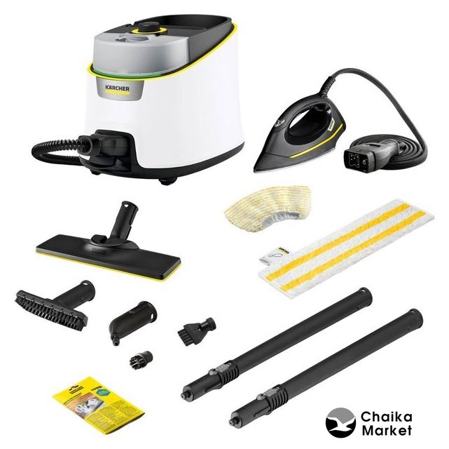 Дополнительные насадки и приспособления | - Универсальная салфетка для пола EasyFix: 1 шт.- Обтяжка из микроволокна для ручной насадки: 1 шт.- Порошок антинакипина: 3 шт.- Точечное сопло- Ручная насадка- Круглая щетка, черная: 1 шт.- Щетка для очистки швов- Паровой утюг EasyFinish- Насадка для пола: EasyFix- Удлинительные трубки (2 х 0,5 м) |