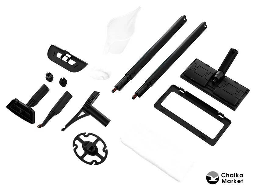Дополнительные насадки и приспособления | - тряпка для отпаривания;- латунная щетка;- тряпка для пола;- насадка для отпаривания;- рамка для ковра;- мерный стакан;- круглая нейлоновая щетка;- держатель шнура;- держатель для одежды;- запасные уплотнительные кольца;- колпачок на паровое сопло. |