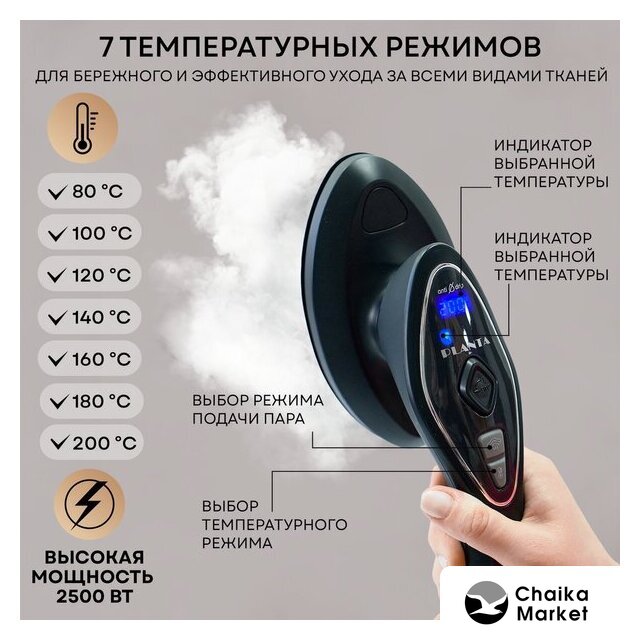 отпариватель-пароочиститель, напольный, 2000 Вт, резервуар: 1 л