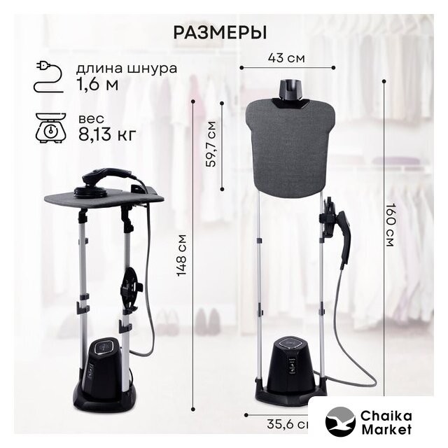 отпариватель, напольный, 2400 Вт, резервуар: 1.7 л