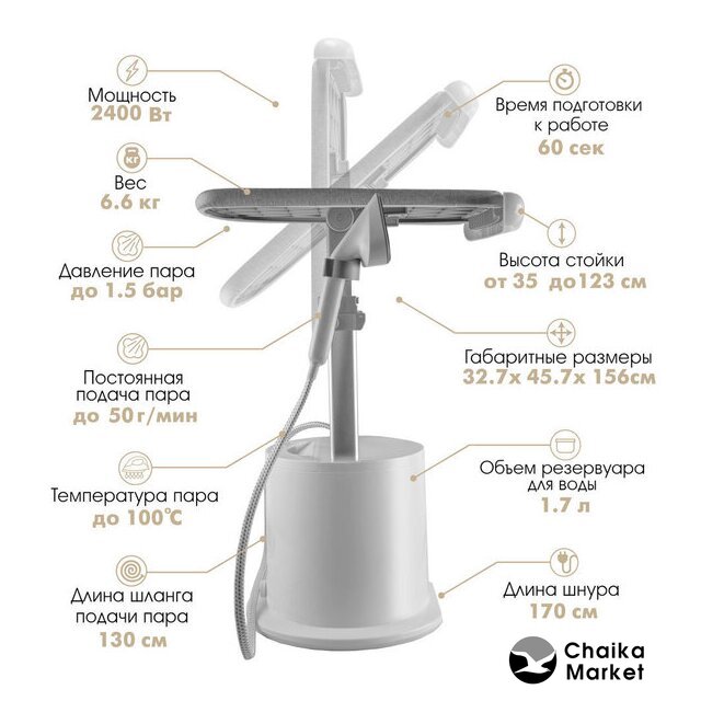 отпариватель, напольный, 2300 Вт, резервуар: 2.2 л