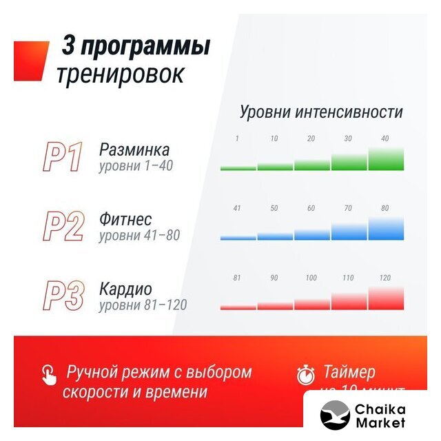 Особенности | индикатор работы: 1-40 уровней отображаются зеленым светом. 41-80 уровни будут отображаться синим светом 81-120 уровни будут отображаться красным светом. 3 двигателя, ПУ в виде наручных часов |